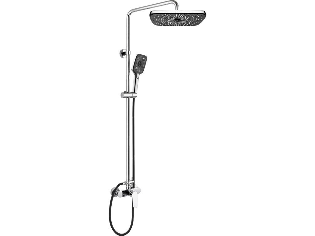 Sprchový set obsahuje baterii se sprchovou soupravou, třípolohovou ruční a hranatou talířovou sprchu. Sprcha je osazena standardním závitem 1/2" pro připojení na sprchovou hadici. Součástí je také černá připojovací hadice o délce 150 cm.