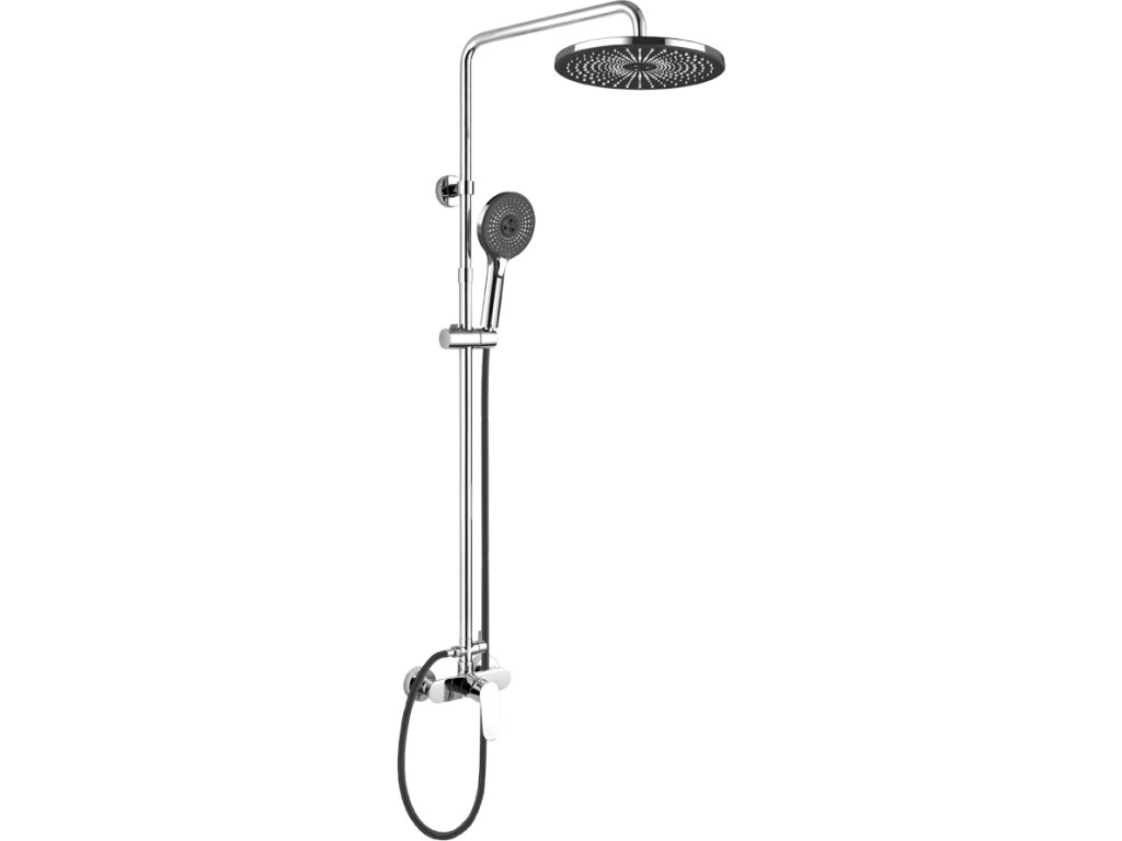 Sprchový set obsahuje baterii se sprchovou soupravou, třípolohovou ruční a kulatou talířovou sprchu. Sprcha je osazena standardním závitem 1/2" pro připojení na sprchovou hadici. Součástí je také černá připojovací hadice o délce 150 cm.