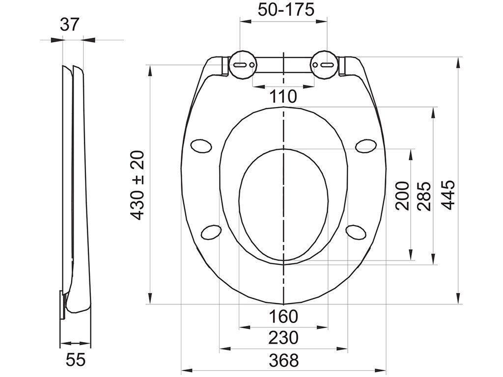 Soubory ke stažení:Samozavírací WC sedátko má nerezové, nastavitelné úchyty, které je možné přizpůsobit rozměrům mísy.