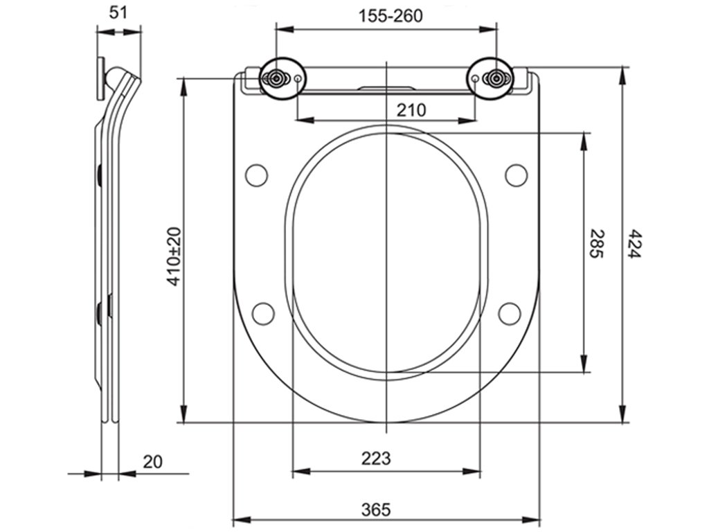Soubory ke stažení:Samozavírací WC sedátko má nerezové, nastavitelné úchyty, které je možné přizpůsobit rozměrům mísy.