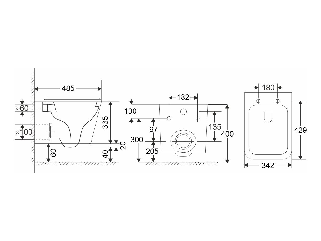 • Pro montáž závěsného WC s roztečí 18cm nebo 23cm