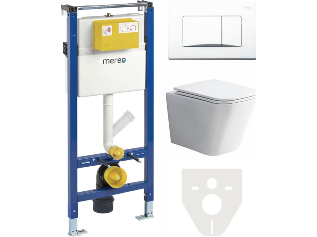 Mereo WC set - Rimless WC hranaté, modul pro sádrokarton, bílé hranaté tlačítko MM02SETRB