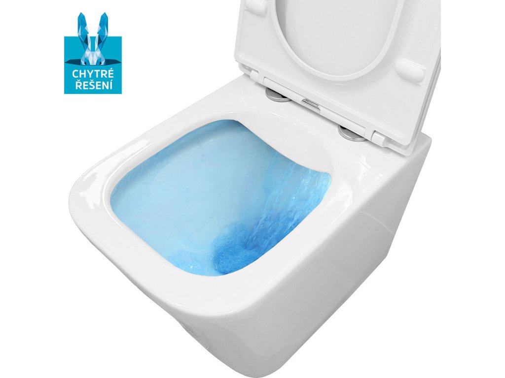 Díky novému tvaru mísy odpadá složité čištění splachovacího žlábku pod okrajem mísy, který je používaný na klasických klozetech, a kde by se mohly hromadit bakterie, špína a usazeniny.