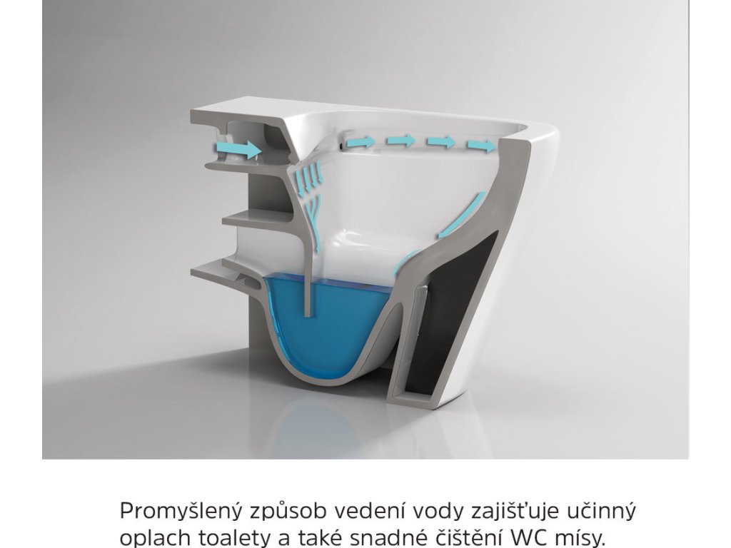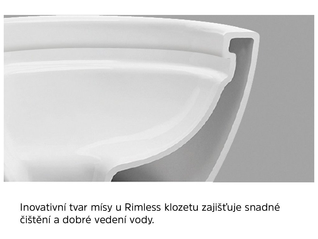 Soubory ke stažení:Rimless je inovativní způsob oplachu WC klozetu. Promyšlený způsob vedení vody zajišťuje účinný oplach toalety a také snadné čištění WC mísy.