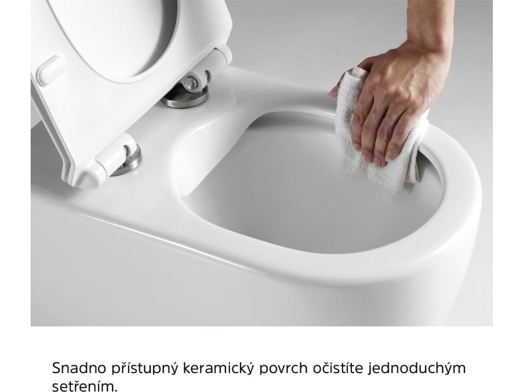 Díky novému tvaru mísy odpadá složité čištění splachovacího žlábku pod okrajem mísy, který je používaný na klasických klozetech, a kde by se mohly hromadit bakterie, špína a usazeniny.