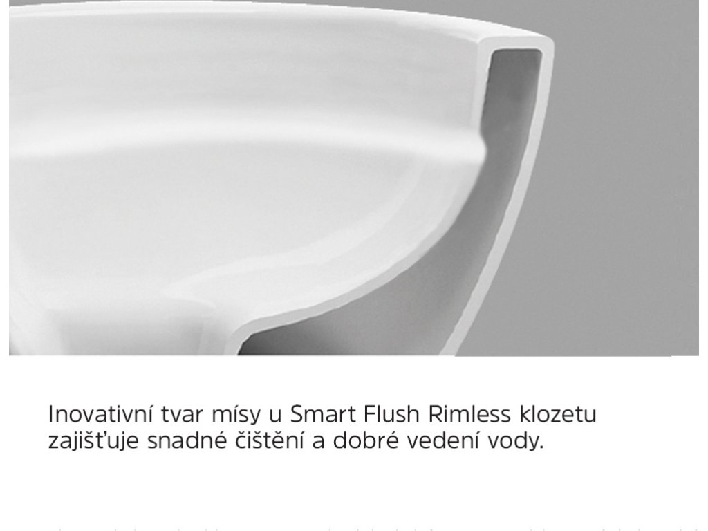 Soubory ke stažení:Tiché splachování je inovativní způsob oplachu WC klozetu. Promyšlený způsob vedení vody zajišťuje účinný oplach toalety a také snadné čištění WC mísy.