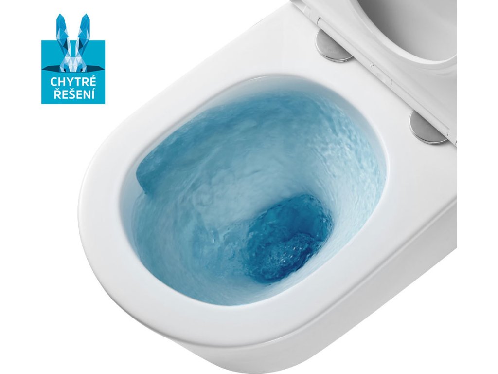 Díky novému tvaru mísy odpadá složité čištění splachovacího žlábku pod okrajem mísy, který je používaný na klasických klozetech, a kde by se mohly hromadit bakterie, špína a usazeniny.