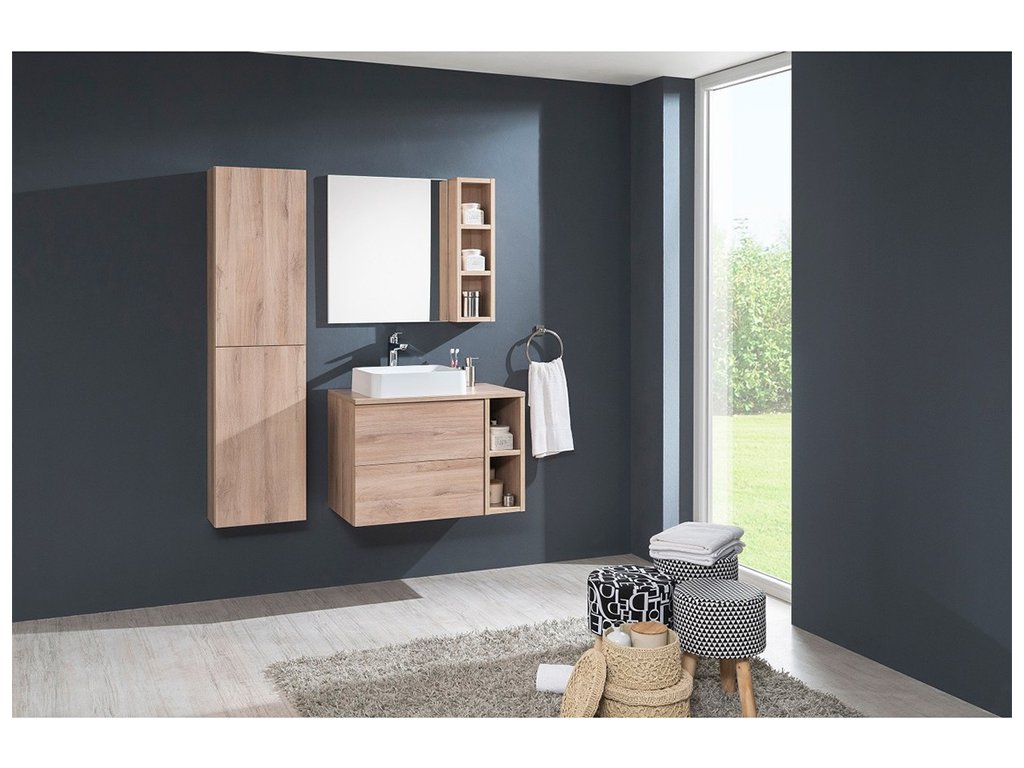 Aira, koupelnová skříňka s umyvadlem z litého mramoru, 610x578x465 mm, spodní, dub Halifax, 2 zásuvky, push-open systém a pomalé dovírání.