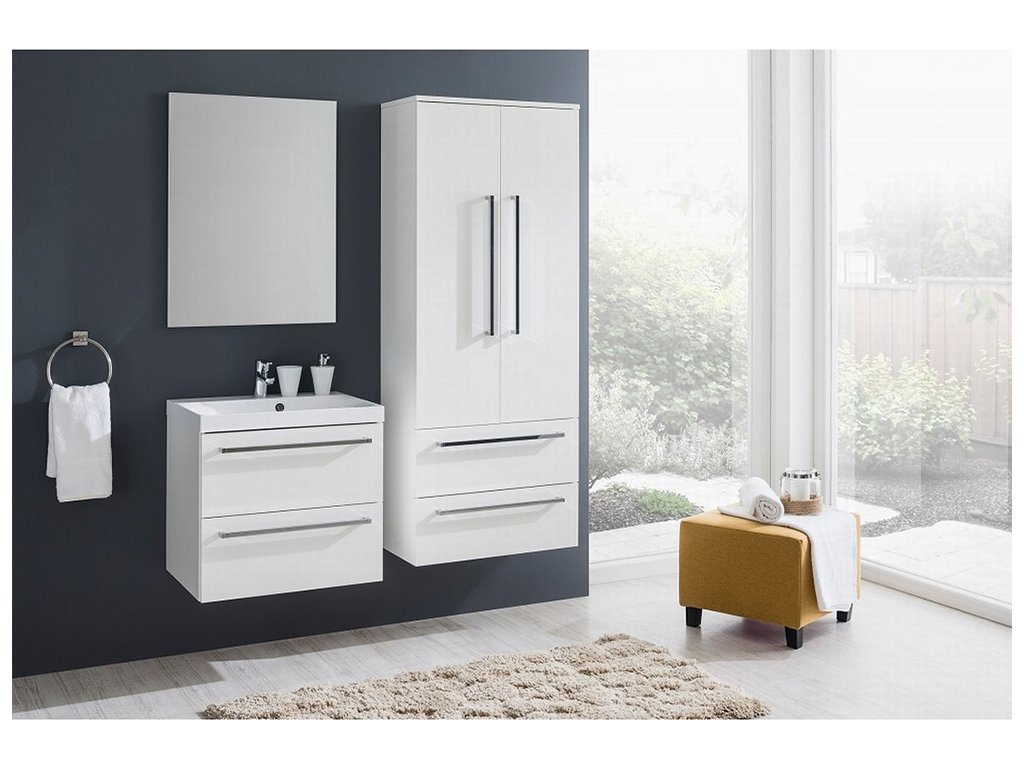 Siena, koupelnová skříňka s keramickým umyvadlem 610x608x475 mm, spodní, 2 zásuvky, push-open systém, bílá lesk.
