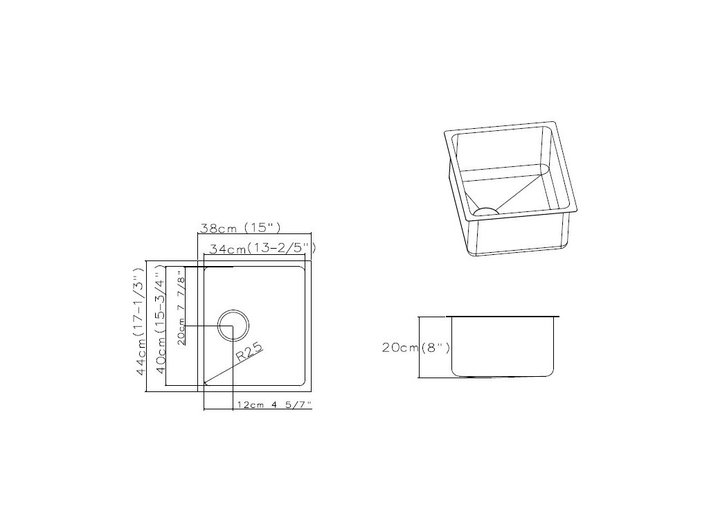Nerezový dřez Sinks BLOCK 380 V 1mm kartáčovaný STSBLK3804401V