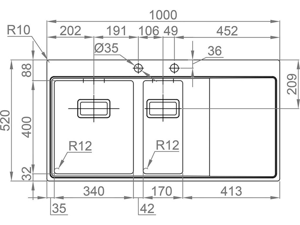 Nerezový dřez Sinks XERON 1000.1 pravý 1,2mm RDXEK10052012P