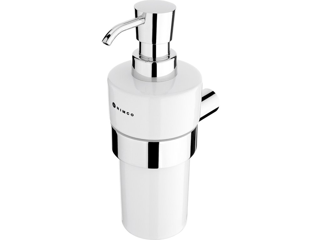 Nástěnný dávkovač tekutého mýdla. Pumpička plastová s povrchovou úpravou chrom. Nádobka keramická, 300 ml.
