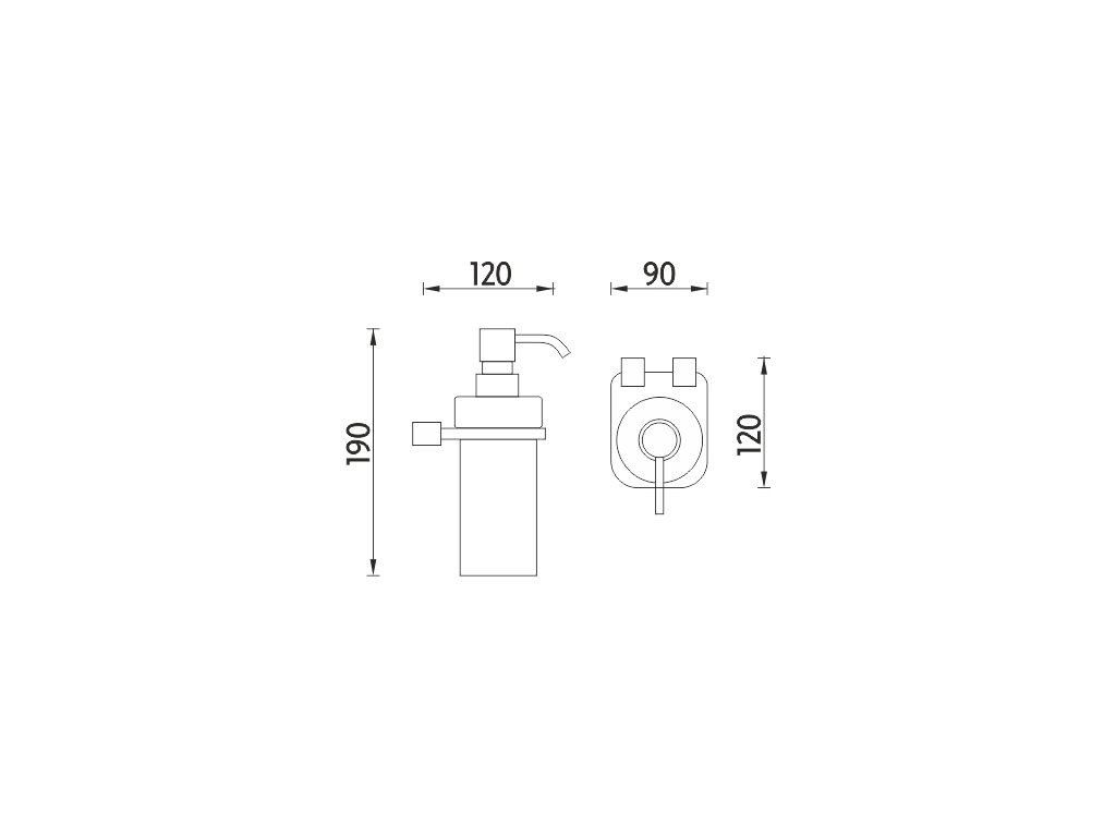 Nástěnný dávkovač tekutého mýdla. Úchyt plexiglass s matný povrchem. Objem 250 ml.