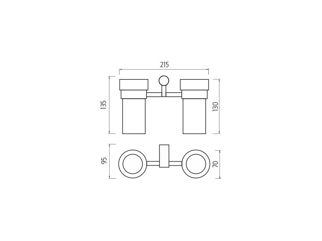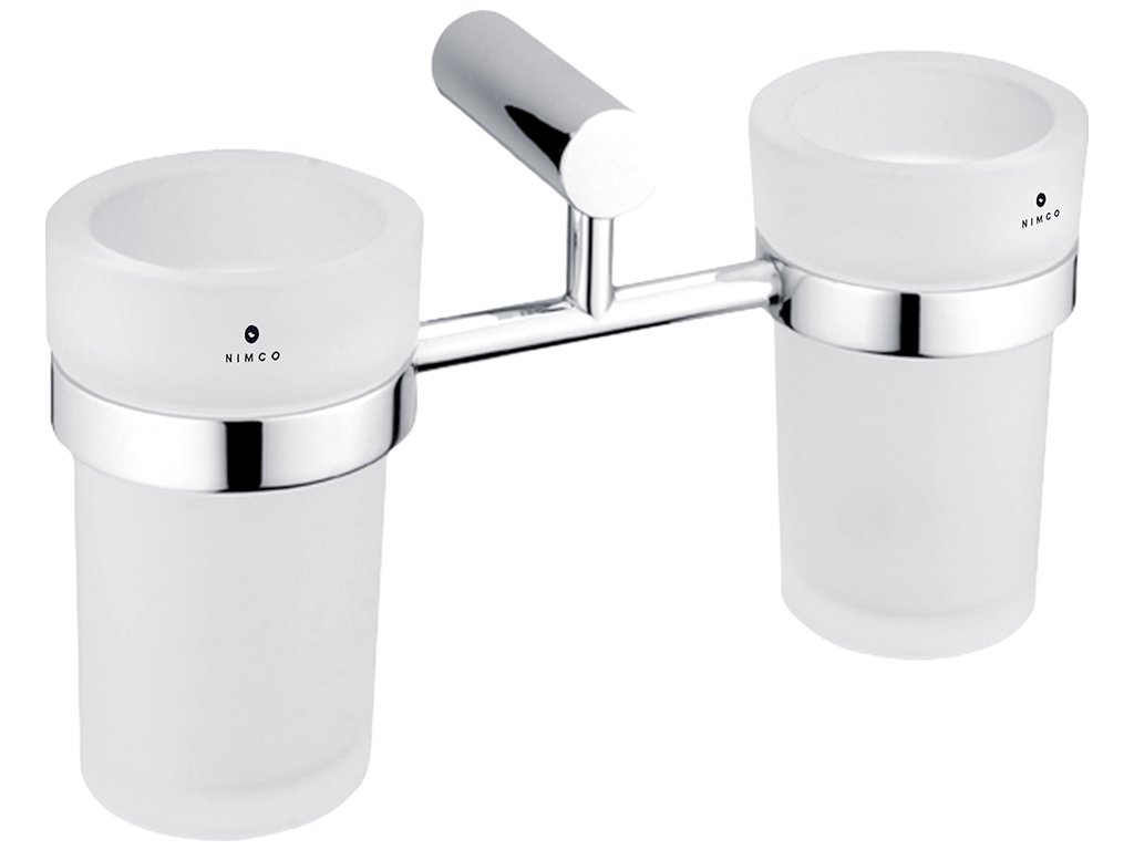 Držák na kartáčky dvojitý se sklenkami z matného skla.