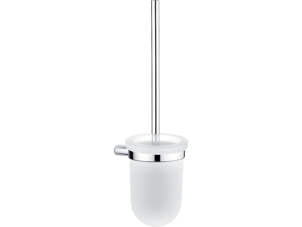 WC štětka s nádobkou z matného skla, nízká. Rukojeť kartáče z mosazi s povrchovou úpravou chrom.