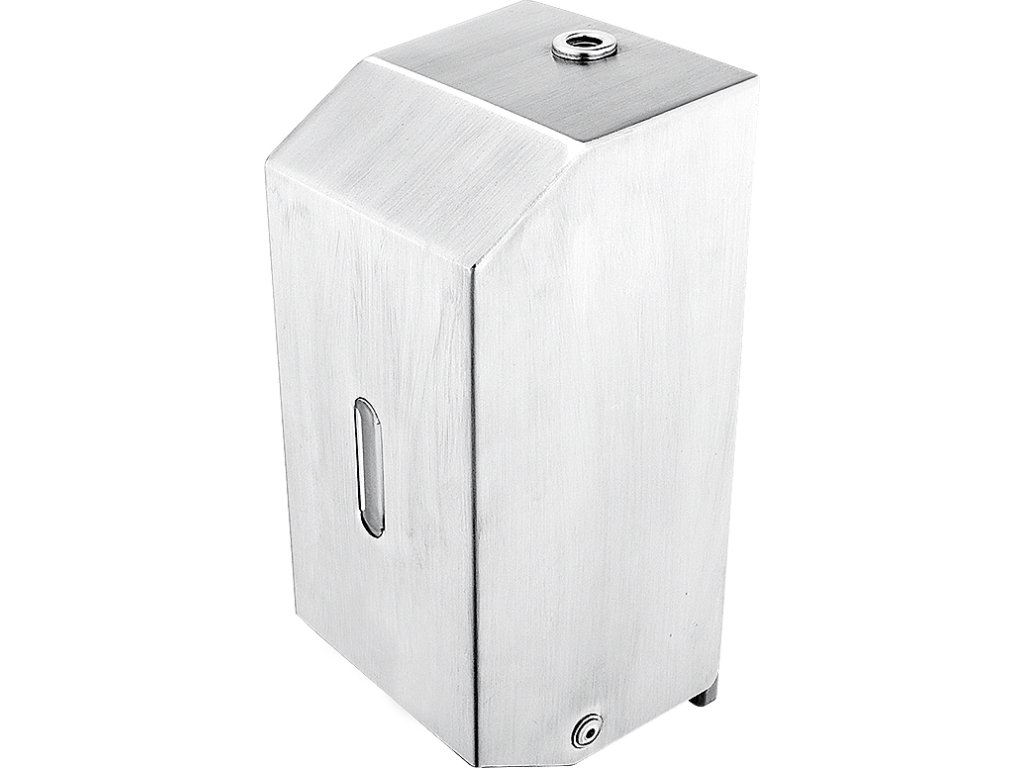 Zásobník na dezinfekční gel nebo tekuté mýdlo vertikální. Broušená nerez 18/8. Objem 800 ml.
