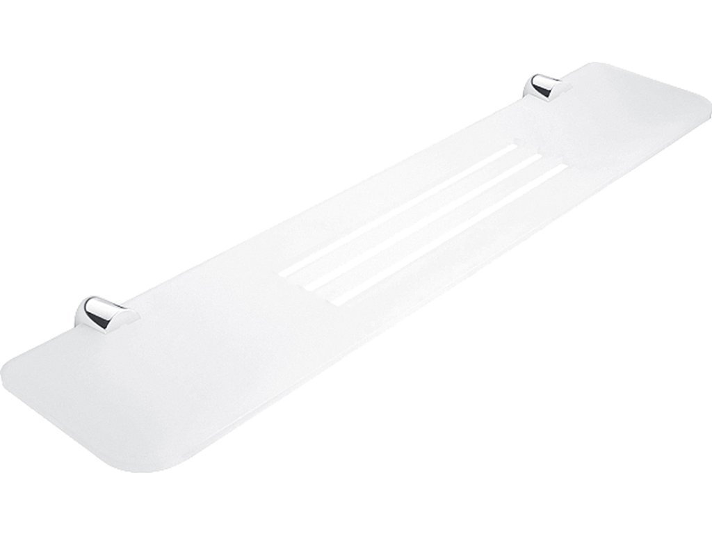Police s frézovanými otvory. Materiál plexiglass s matným povrchem. Délka 60 cm.