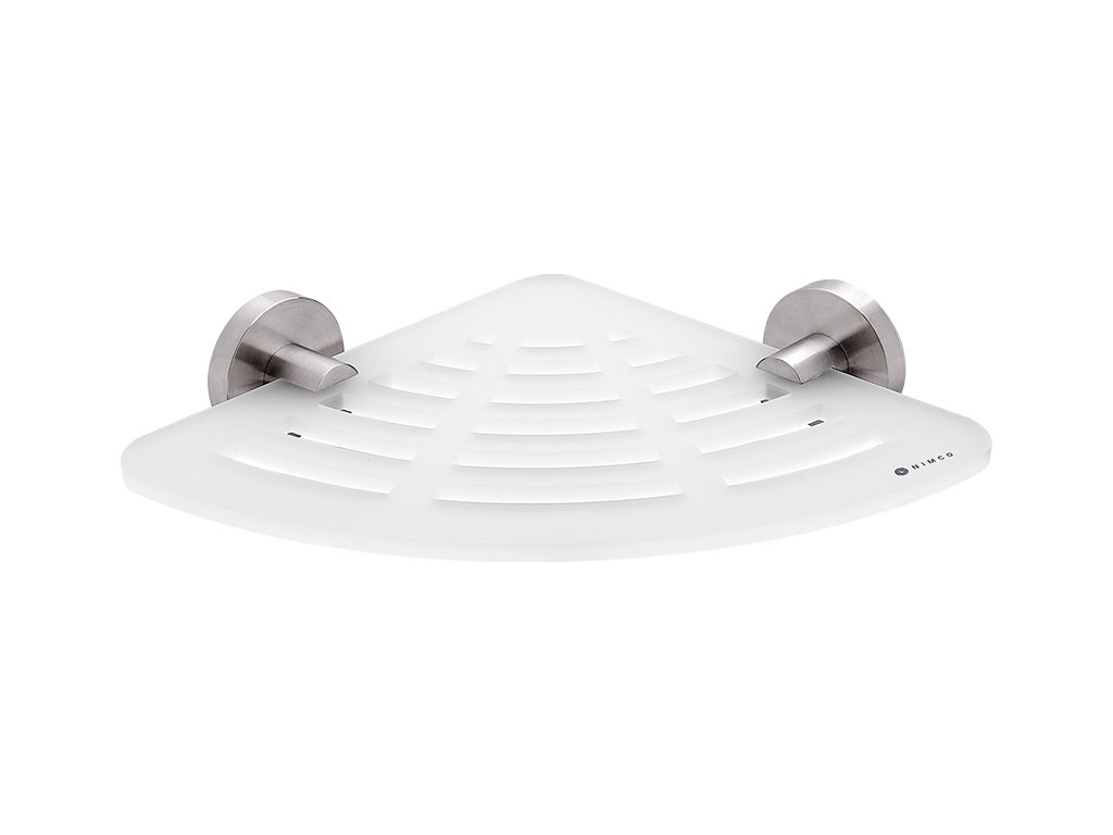 Rohová polička plexiglass s frézováním. Úchyty broušená nerez. Rozměr police 23,5x23,5 cm.