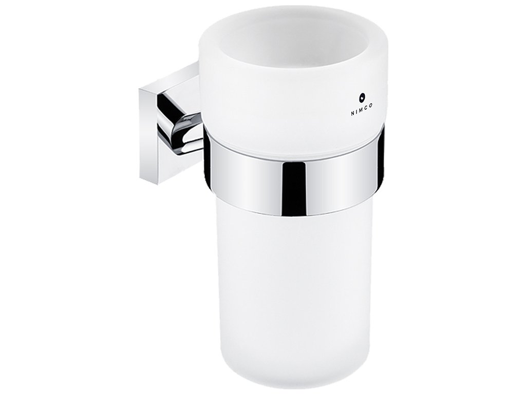 Držák sklenky. Nádobka z matného skla. Úchyt mosaz s povrchovou úpravou chrom.