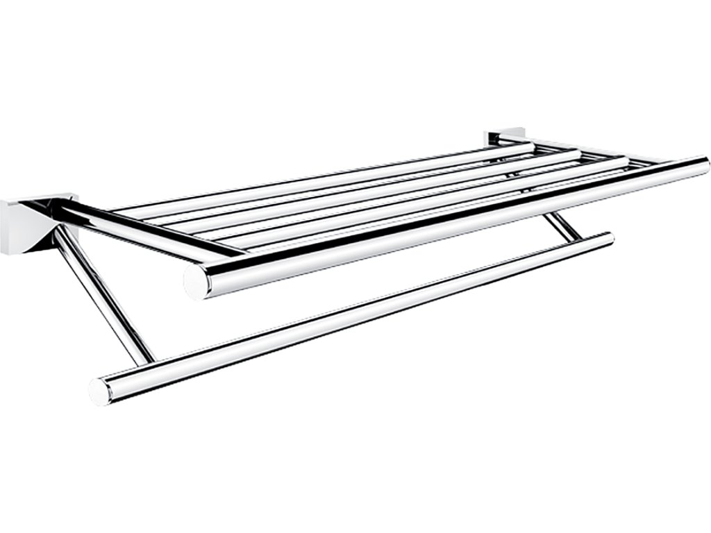 Police na ručníky s hrazdou. Vnitřní šíře pro ručníky 500 mm. Materiál mosaz s povrchovou úpravou chrom.