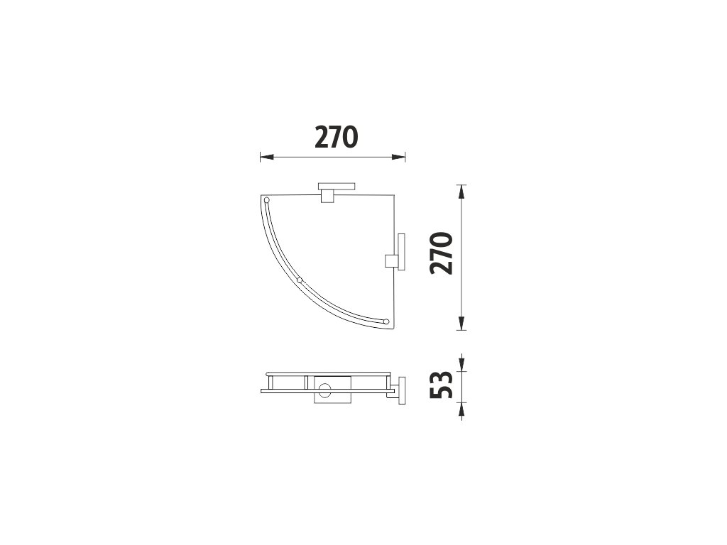 Police rohová s ohrádkou. Matné sklo. Rozměr 27x27 cm.