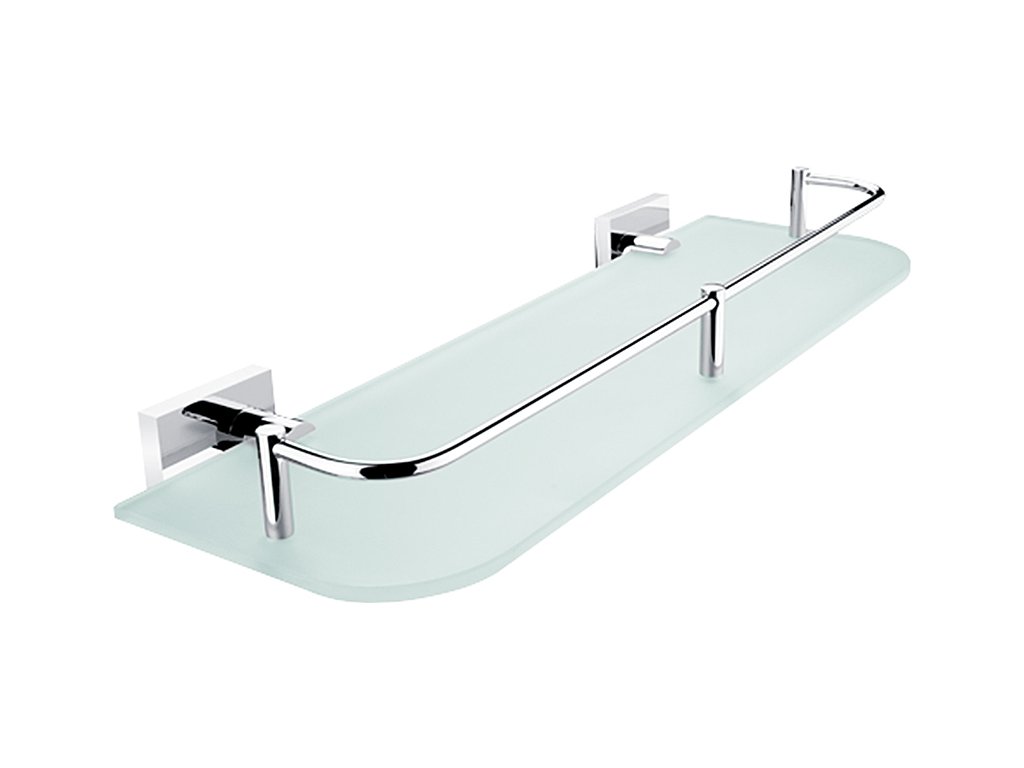 Police s ohrádkou z matného skla. Délka 40 cm. Úchyty mosaz s povrchovou úpravou chrom.