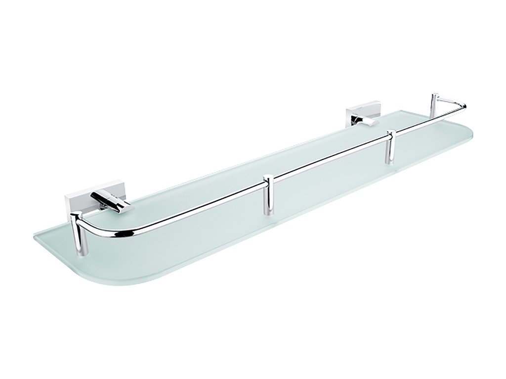 Police s ohrádkou z matného skla. Délka 50 cm. Úchyty mosaz s povrchovou úpravou chrom.