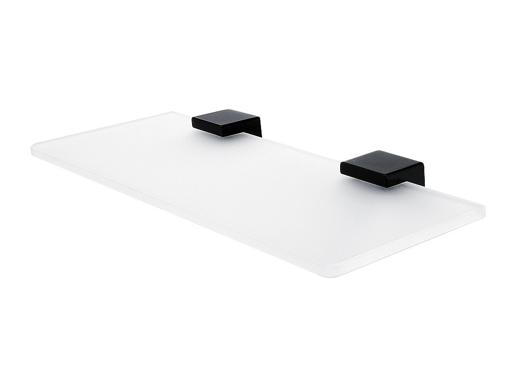 Police. Sklo extra čiré matné. Rozměr 30x11 cm. Tloušťka skla 8 mm! Úchyt police mosaz / černý mat.
