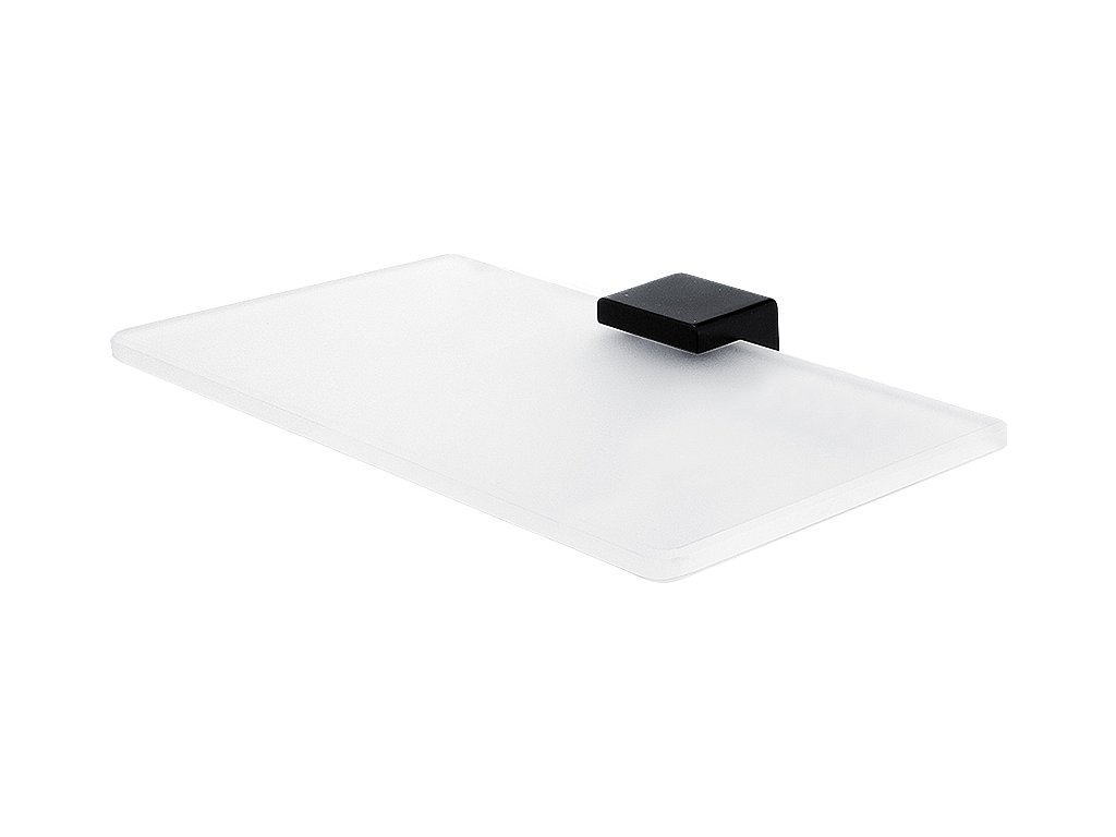 Police s jedním úchytem. Sklo extra čiré matné. Rozměr 20x11 cm. Úchyt police mosaz / černý mat.