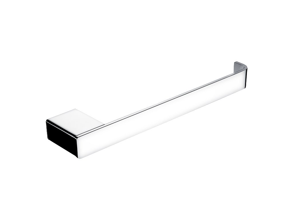 Držák na ručníky 25 cm na zeď, zahnuté rameno je skvělým doplňkem do koupelny. Opusťte konvenční tvary a vsaďte na osobitý styl! I zařízení koupelny o vás mnohé vypoví. Současné trendy se stále stáčejí k využívání chladného kovu a hran. Exkluzivní série KIBO nabízí sladění moderních prvků i nadčasovosti. Držák na ručníky, 25 cm bude koupelně slušet mnohem více, pokud zvolíte i další doplňky série Kibo z nabídky koupelnových a WC doplňků NIMCO.
