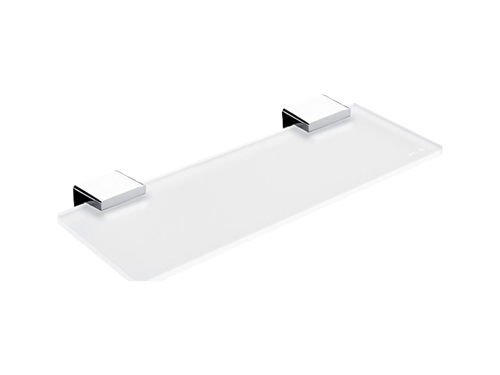 Police 30 cm do koupelny, matné bílé sklo a chrom je skvělým doplňkem do koupelny. Opusťte konvenční tvary a vsaďte na osobitý styl! I zařízení koupelny o vás mnohé vypoví. Současné trendy se stále stáčejí k využívání chladného kovu a hran. Exkluzivní série KIBO nabízí sladění moderních prvků i nadčasovosti. Sklo police je extra čiré matné. Oproti běžně zeleně zabarvenému sklu je toto zcela bezbarvé. Jeho naprostou bělost zvýrazňuje úprava oboustranného matování. Působí sametově a čistě.