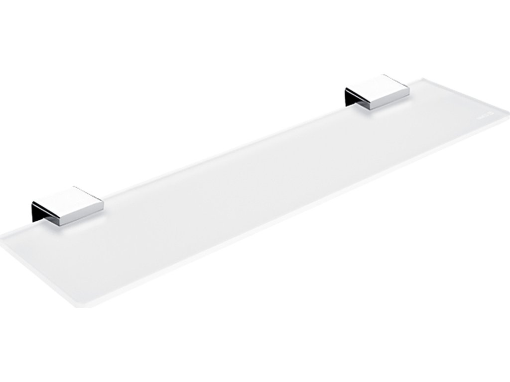 Police 50 cm do koupelny, matné bílé sklo a chrom je skvělým doplňkem do koupelny. Opusťte konvenční tvary a vsaďte na osobitý styl! I zařízení koupelny o vás mnohé vypoví. Současné trendy se stále stáčejí k využívání chladného kovu a hran. Exkluzivní série KIBO nabízí sladění moderních prvků i nadčasovosti. Sklo police je extra čiré matné. Oproti běžně zeleně zabarvenému sklu je toto zcela bezbarvé. Jeho naprostou bělost zvýrazňuje úprava oboustranného matování. Působí sametově a čistě.