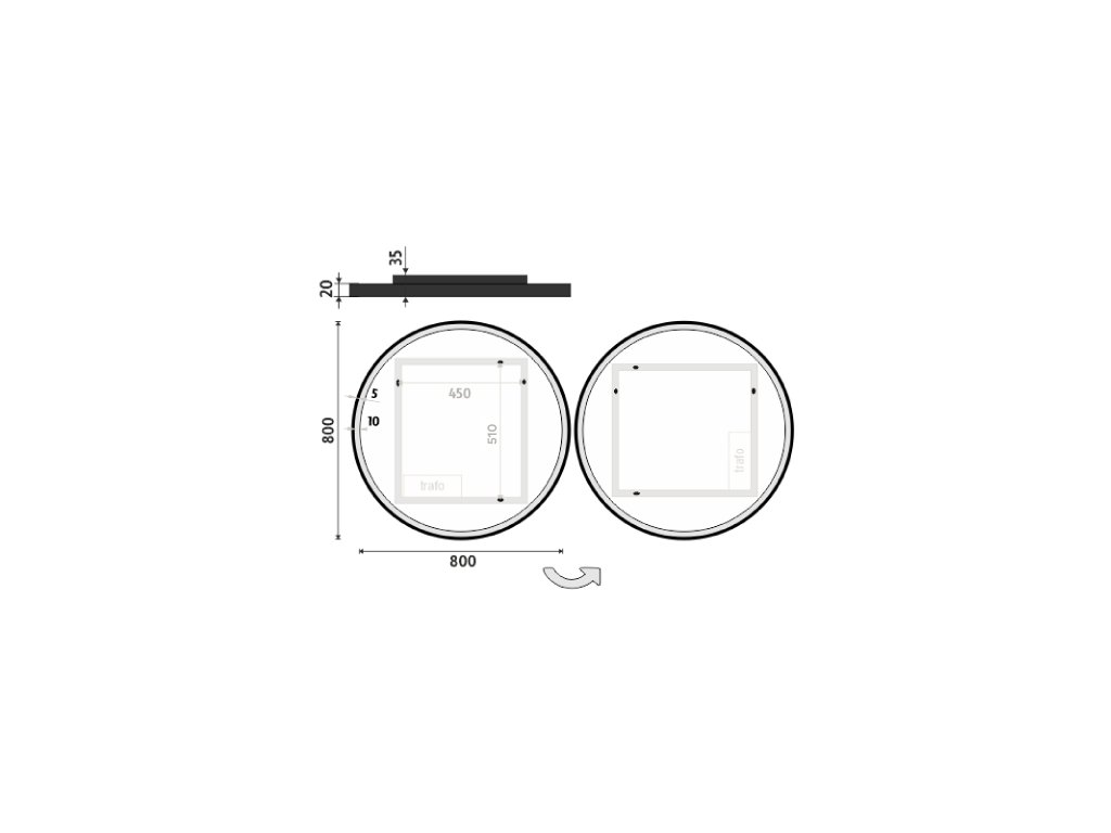 Kulaté zrcadlo s rámem a s celoobvodovým podsvícením pro dokonalé a rovnoměrné osvětlení. Zrcadlo bez integrovaného vypínače je určené k připojení a ovládání nástěnným vypínačem. Barva podsvícení zrcadla je pevně nastavena. Ke zlepšení kvality podsvícení je použit difuzor z akrylového skla, který zajišťuje rovnoměrný a měkký rozptyl světla. LED diody jsou elegantně integrovány přímo v difuzoru, což zvyšuje intenzitu světla a zaručuje jeho jednotné rozprostření po celé ploše podsvícení. Výsledkem je příjemné a rovnoměrné osvětlení bez viditelných bodových zdrojů. Zrcadlo využívá nejmodernější LED čipy SMD 2835, které jsou známé svou vysokou svítivostí, energetickou úsporností a dlouhou životností. Hustota čipů 96/m, životnost 50 000 hodin. Parametry LED: Survival Factor = 1, Lumen Maintenance Factor 0,99 a Flicker Metric 0,02, pak zajišťují stabilní, bezblikavé a dlouhodobě konzistentní osvětlení. Nosná konstrukce zrcadla je vyrobena z masivního hliníkového rámu o rozměrech 32x19 mm, který zajišťuje vysokou pevnost a stabilitu. Stejně tak je z hliníku vyroben kryt zdroje a všech elektronických součástek. Sklo o tloušťce 5 mm je opatřeno bezpečnostní fólií, která chrání před zraněním v případě rozbití. Zrcadlo navíc disponuje stupněm ochrany proti vlhkosti IP44, což zaručuje spolehlivost i v prostředí s vyšší vlhkostí. Zrcadlo splňuje všechny české normy a je opatřeno českým certifikátem CE, který zaručuje jeho kvalitu a bezpečnost. Nabízí flexibilní možnosti upevnění, a to jak vertikálně, tak horizontálně, a je dodáváno včetně kompletní montážní sady a kabelové spojky s ochranou IP44. Pro zajištění bezpečné přepravy je zrcadlo pečlivě zabaleno a připraveno k expedici prostřednictvím kurýrní služby. Ovládání: Bez integrovaného spínače Ovládání nástěnným vypínačem Nastavení barvy podsvícení: Barva podsvícení pevně nastavena Barva podsvícení: 4000 K (neutrální bílé světlo, ideální pro přesné a přirozené osvětlení) Funkce stmívání: Není instalováno Paměť nastavení: Není instalováno Konstrukce podsvícení: K rovnoměrnému rozptylu světla zrcadlo disponuje difuzorem z akrylového skla Integrace LED: LED diody jsou integrovány přímo v difuzoru LED čip: Nejmodernější LED čipy SMD 2835 LED pásek - hustota čipů: 96/m Životnost LED čipů: Až 50 000 hodin Kvalita osvětlení LED: Survival Factor = 1; Lumen maintenance factor = 0,99; Flicker metric = 0,02 Materiál: Zrcadlové sklo, hliník Materiál konstrukce: Rám zrcadla a kryt zdroje jsou vyrobeny z hliníku Tloušťka skla: 5 mm Ochrana při rozbití: Bezpečnostní fólie Stupeň ochrany: IP 44 Certifikace: Český certifikát CE Umístění: Montáž na stěnu Možnost upevnění vertikálně i horizontálně Montážní příslušenství: Součástí balení je montážní sada a kabelová spojka s ochranou IP 44 Obal: Zabalené pro přepravu kurýrní službou Napětí: Vstupní napětí 220-240 V Výstupní napětí 12 V Příkon: 28 W, světelný tok: 2016 lm Rozměr: v: 800 mm š: 35 mm d: 800 mm Hmotnost: 9,94 kg