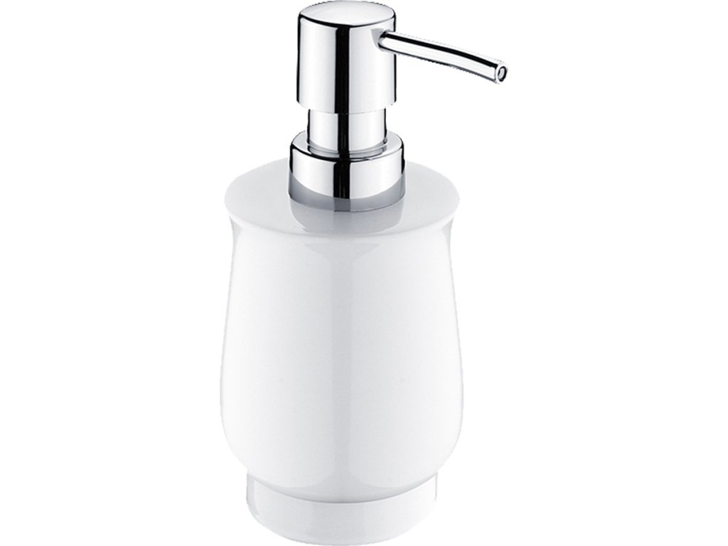 Keramický dávkovač na tekuté mýdlo. Objem 300 ml. Pumpička plast. Povrchová úprava chrom.