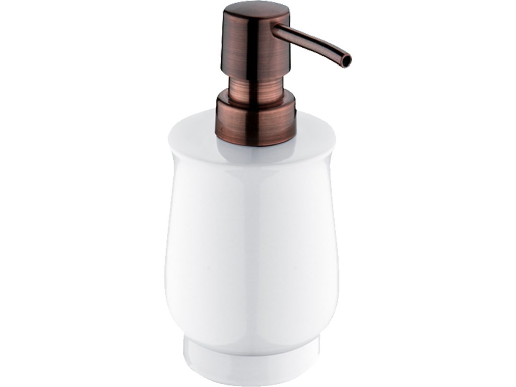 Keramický dávkovač na tekuté mýdlo. Objem 300 ml. Pumpička plast. Povrchová úprava staroměď.