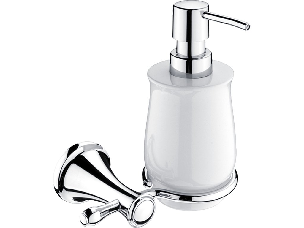 Retro keramický dávkovač tekutého mýdla s držákem na zeď chrom je skvělým doplňkem do koupelny. Interiér koupelny v retro stylu se vyznačuje svou elegancí s romantickým nádechem. Dává přednost vícero střídmým dekoracím a zaměřuje se na preciznost detailu. Máte-li v plánu zařídit si retro koupelnu, série LADA je tu právě pro vás. Dávkovač tekutého mýdla, pumpička plast bude koupelně slušet mnohem více, pokud zvolíte i další doplňky série Lada z nabídky koupelnových a WC doplňků NIMCO.