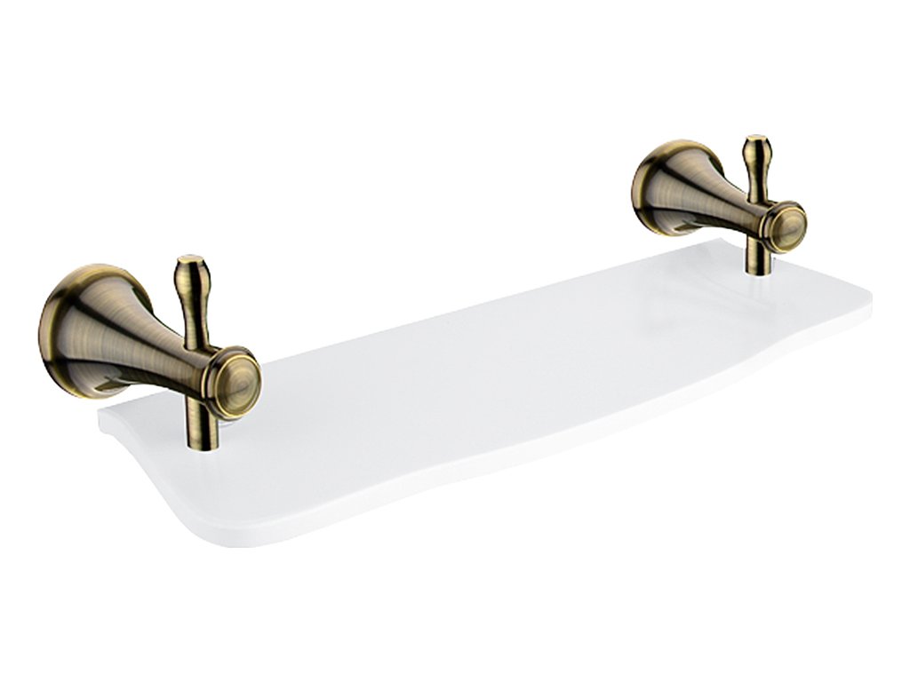 Police z bílého umělého kamene. Délka 40 cm. Úchyty mosaz s povrchovou úpravou staromosaz.