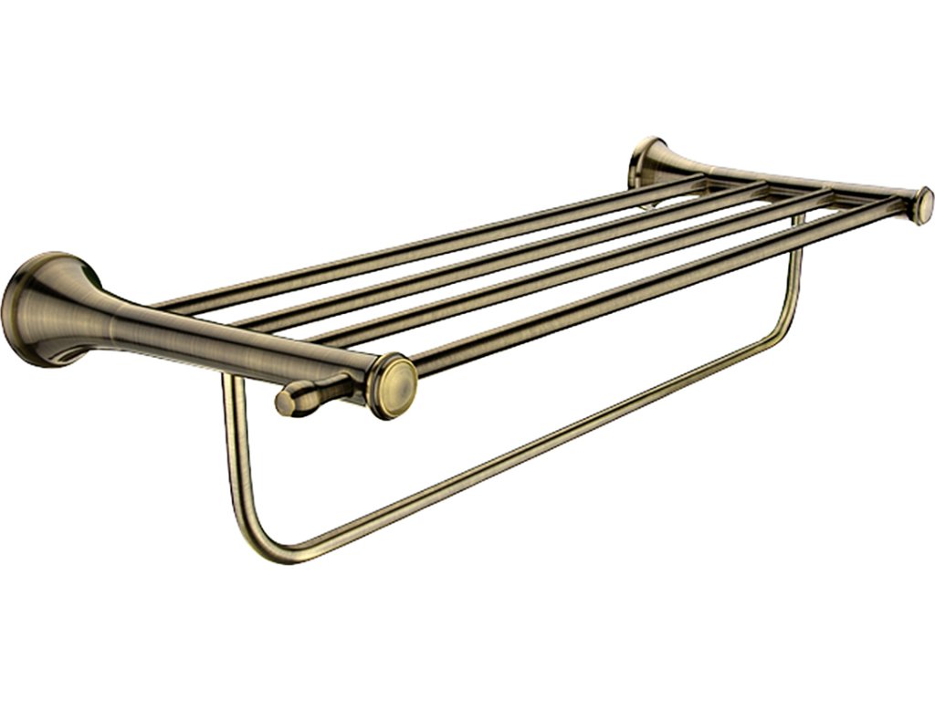 Police na ručníky s hrazdou. Vnitřní šíře pro ručníky 53 cm. Materiál mosaz / staromosaz.