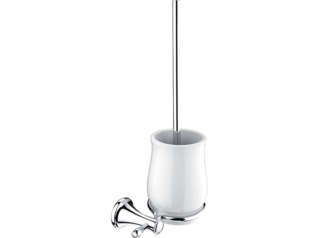 WC štětka. Keramická nádobka. Materiál mosaz s povrchovou úpravou chrom.