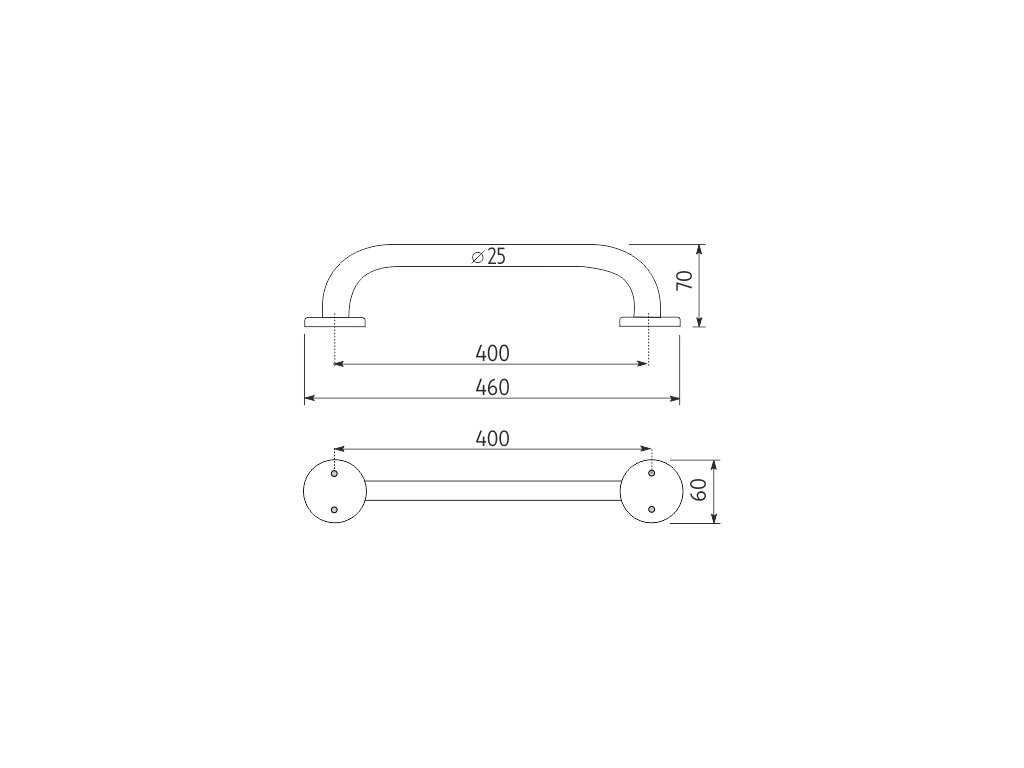Koupelnové madlo 40 cm x 25 mm do koupelny, sprchy, pro seniory je skvělým doplňkem do koupelny. Často bývá koupelně vyčleněna jen opravdu malá plocha. A právě proto, že v této často nejmenší místnosti nebývá příliš prostoru pro estetické doplňky, měli bychom zaostřit svoji pozornost především na předměty, které plní konkrétní funkce. Řešením může být právě některý z následujících výrobků. Uchycení madla na každé straně dvěma šrouby. Vzdálenost mezi šrouby 400 mm. Rozteč mezi šrouby na jedné straně 45-52 mm.