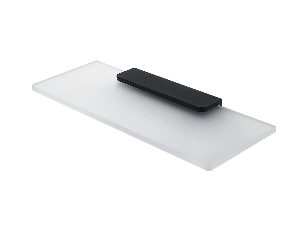 Police do koupelny sklěněná 30 cm bílá mat, černý úchyt je skvělým doplňkem do koupelny. Uchycení dvěma šrouby. Vzdálenost mezi vyvrtanými otvory 113 mm.