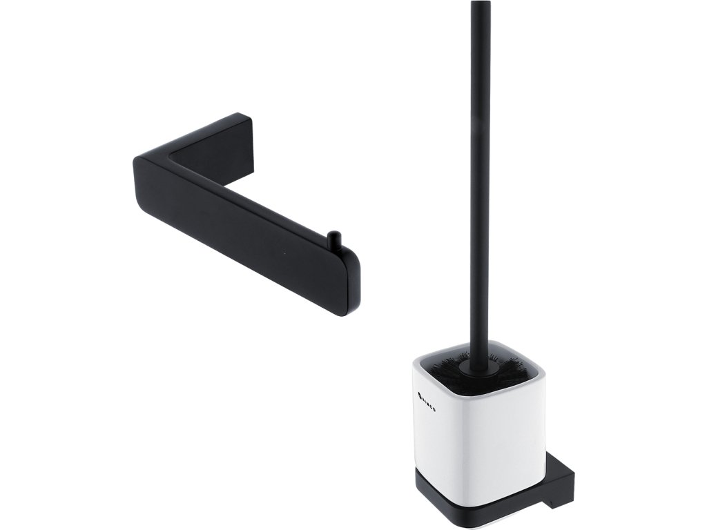 Základní sada doplňků k WC. WC štětka s keramickým držákem na zeď a držák toaletního papíru ze série Nimco Maya černá.