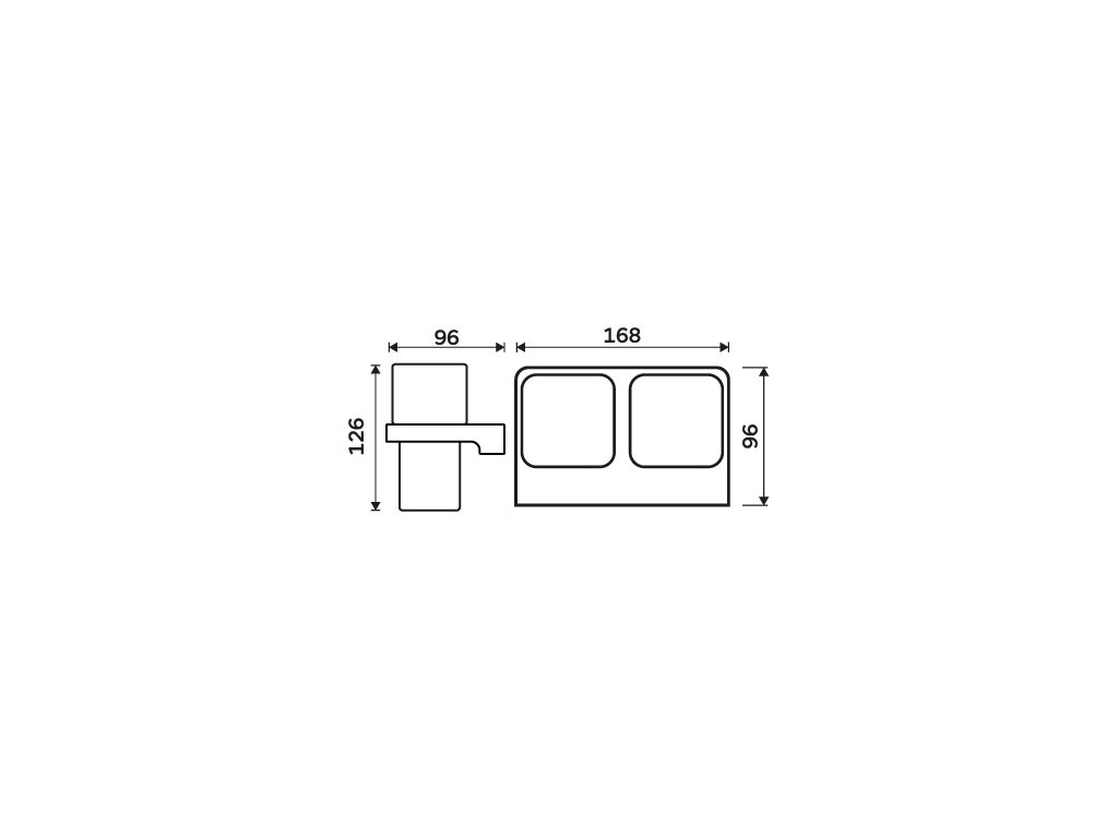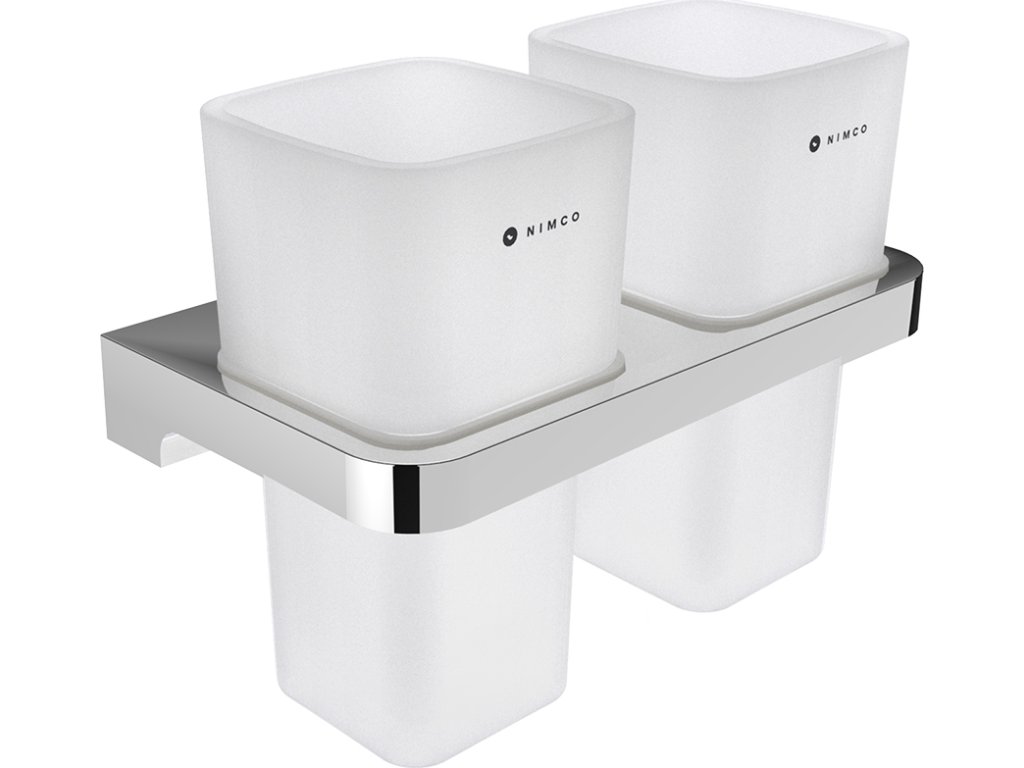 Dvojitý držák na kartáčky. Pohárky z matného skla.
