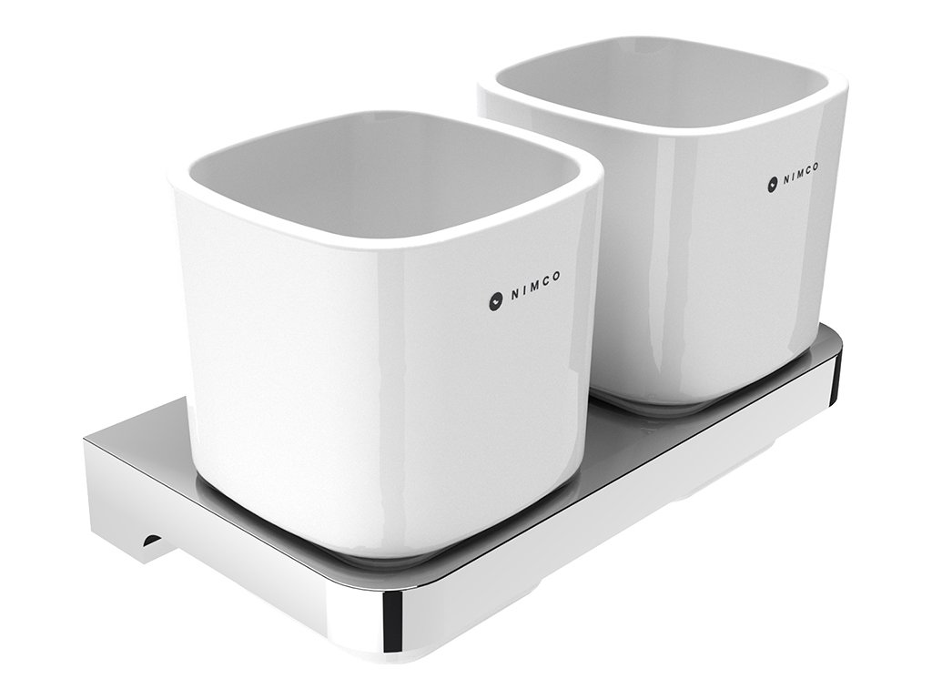 Dvojitý nástěnný držák s pohárky na zubní kartáčky. Keramické pohárky bílé barvy v kombinaci s chromovaným držákem perfektně ladí prostoru u umyvadla. Díky montáži na zeď je údržba povrchu umyvadla mnohem jednodušší. Pro vyladěnou koupelnu doporučujeme i další produkty této designové řady. Držák na kartáčky s pohárky bude koupelně slušet mnohem více, pokud zvolíte i další doplňky série Maya z nabídky koupelnových a WC doplňků NIMCO.