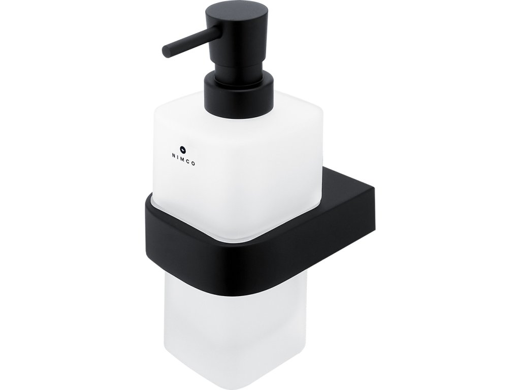 Nástěnný dávkovač tekutého mýdla matné sklo a černý kov, pumpa mosaz je skvělým doplňkem do koupelny. Dávkovač tekutého mýdla, pumpička mosaz bude koupelně slušet mnohem více, pokud zvolíte i další doplňky série Nikau černá z nabídky koupelnových a WC doplňků NIMCO.