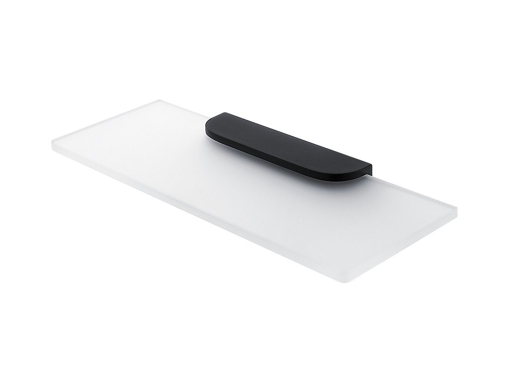 Police do koupelny sklěněná 30 cm bílá mat, černý úchyt je skvělým doplňkem do koupelny. Uchycení dvěma šrouby. Vzdálenost mezi vyvrtanými otvory 113 mm.