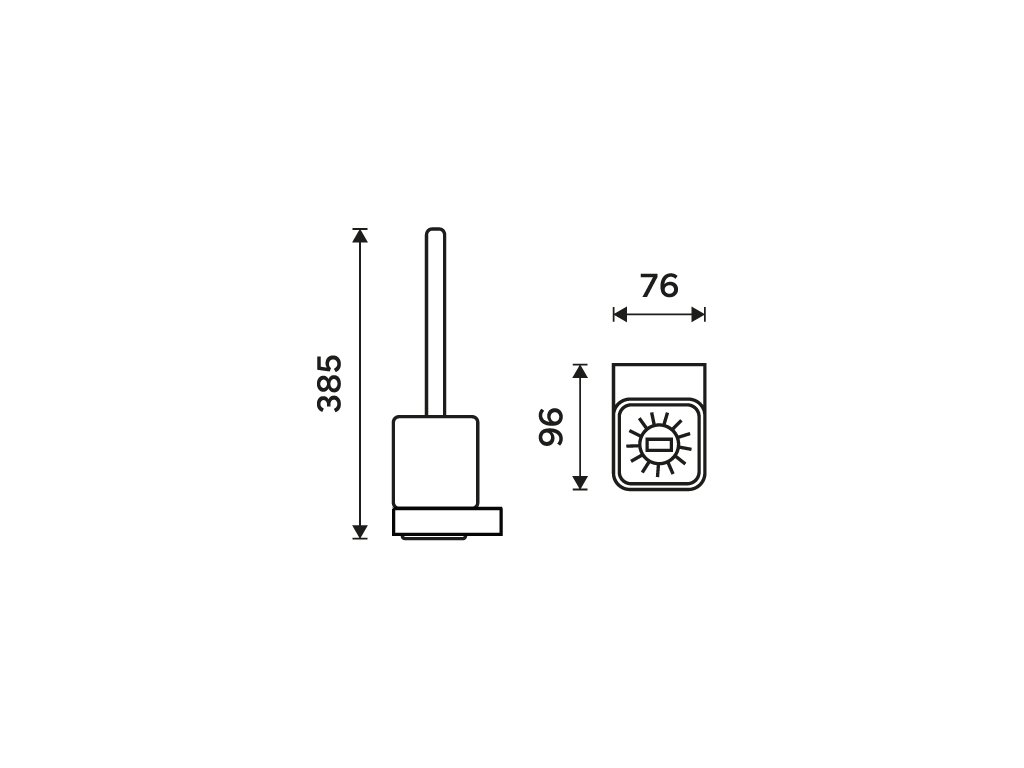WC štětka s masivní hranatou rukojetí z mosazi. Keramická nádobka. Rukojeť kartáče černý mat.