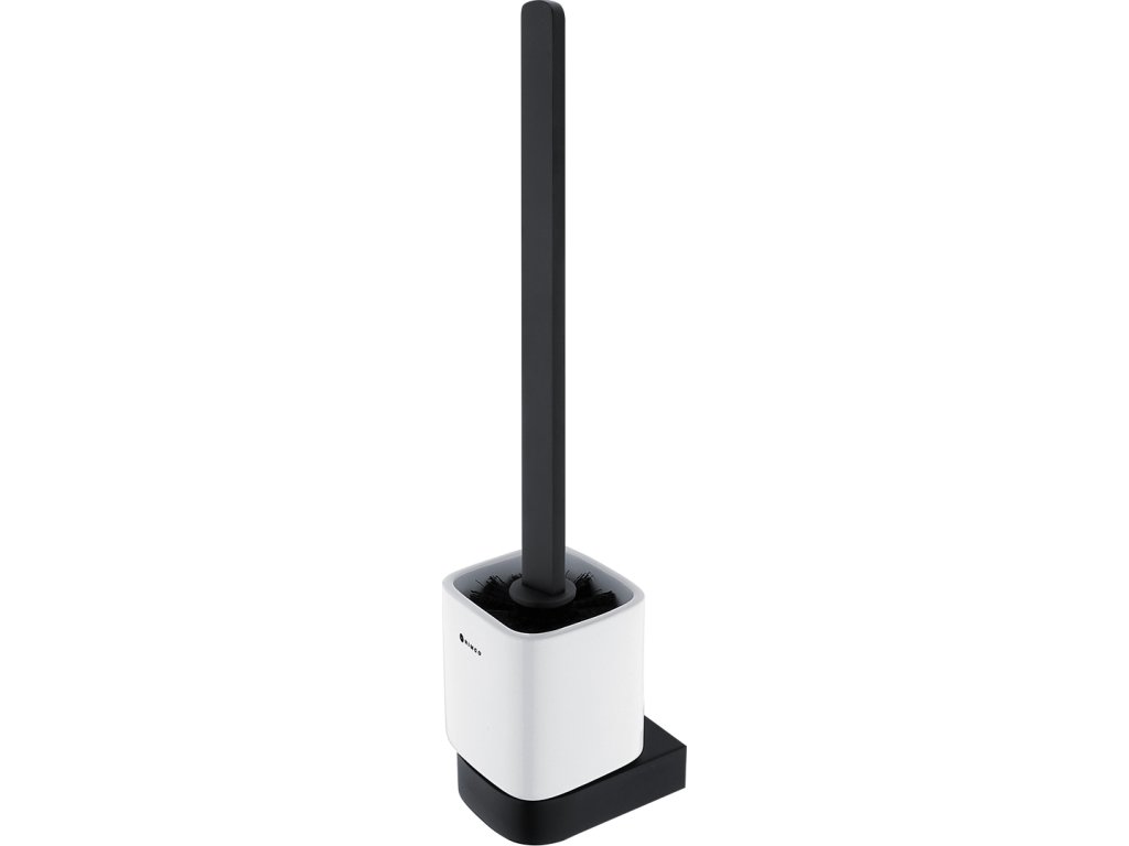 WC štětka s držákem na zeď černá nízká nádoba keramická, hranatá rukojeť je skvělým doplňkem k WC. Toaletní WC kartáč s hranatou rukojetí bude koupelně slušet mnohem více, pokud zvolíte i další doplňky série Nikau černá z nabídky koupelnových a WC doplňků NIMCO.