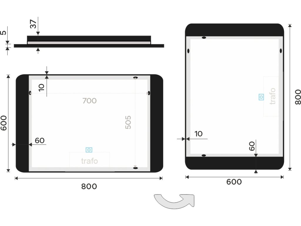 Rozměry (š x v x h): | 800 x 600 x 37mm |