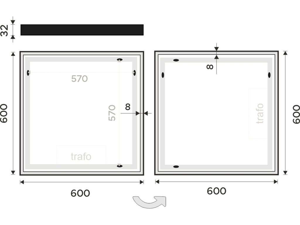 Obdélníkové zrcadlo s rámem s ostrými rohy a celoobvodovým svícením pro dokonalé a rovnoměrné osvětlení. Zrcadlo bez integrovaného vypínače je určené k připojení a ovládání nástěnným vypínačem. Barva světla zrcadla je pevně nastavena. Pro dosažení kvalitního a rovnoměrného svícení je použit akrylový difuzor, který zajišťuje měkký a harmonický rozptyl světla bez viditelných bodových zdrojů. LED diody jsou vkusně integrovány do rámu spolu s difuzorem, což přispívá k elegantnímu a čistému vzhledu zrcadla. Zrcadlo využívá nejmodernější LED čipy SMD 2835, které jsou známé svou vysokou svítivostí, energetickou úsporností a dlouhou životností. Hustota čipů 96/m, životnost 50 000 hodin. Parametry LED: Survival Factor = 1, Lumen Maintenance Factor 0,99 a Flicker Metric 0,02, pak zajišťují stabilní, bezblikavé a dlouhodobě konzistentní osvětlení. Nosná konstrukce zrcadla je vyrobena z masivního hliníkového rámu o rozměrech 32x19 mm, který zajišťuje vysokou pevnost a stabilitu. Stejně tak je z hliníku vyroben kryt zdroje a všech elektronických součástek. Sklo o tloušťce 5 mm je opatřeno bezpečnostní fólií, která chrání před zraněním v případě rozbití. Zrcadlo navíc disponuje stupněm ochrany proti vlhkosti IP44, což zaručuje spolehlivost i v prostředí s vyšší vlhkostí. Zrcadlo splňuje všechny české normy a je opatřeno českým certifikátem CE, který zaručuje jeho kvalitu a bezpečnost. Nabízí flexibilní možnosti upevnění, a to jak vertikálně, tak horizontálně, a je dodáváno včetně kompletní montážní sady a kabelové spojky s ochranou IP44. Pro zajištění bezpečné přepravy je zrcadlo pečlivě zabaleno a připraveno k expedici prostřednictvím kurýrní služby. Ovládání: Bez integrovaného spínače Ovládání nástěnným vypínačem Nastavení barvy světla: Barva světla pevně nastavena Barva světla: 4000 K (neutrální bílé světlo, ideální pro přesné a přirozené osvětlení) Funkce stmívání: Není instalováno Paměť nastavení: Není instalováno Konstrukce svícení: K rovnoměrnému rozptylu světla zrcadlo disponuje akrylovým matovaným difuzorem Integrace LED: Led diody jsou zabudované v rámu LED čip: Nejmodernější LED čipy SMD 2835 LED pásek - hustota čipů: 96/m Životnost LED čipů: Až 50 000 hodin Kvalita osvětlení LED: Survival Factor = 1; Lumen maintenance factor = 0,99; Flicker metric = 0,02 Materiál: Zrcadlové sklo, hliník Materiál konstrukce: Rám zrcadla a kryt zdroje jsou vyrobeny z hliníku Tloušťka skla: 5 mm Ochrana při rozbití: Bezpečnostní fólie Stupeň ochrany: IP 44 Certifikace: Český certifikát CE Umístění: Montáž na stěnu Možnost upevnění vertikálně i horizontálně Montážní příslušenství: Součástí balení je montážní sada a kabelová spojka s ochranou IP 44 Obal: Zabalené pro přepravu kurýrní službou Napětí: Vstupní napětí 220-240 V Výstupní napětí 12 V Příkon: 30 W, světelný tok: 2160 lm Rozměr: v: 600 mm š: 32 mm d: 600 mm Hmotnost: 6,08 kg